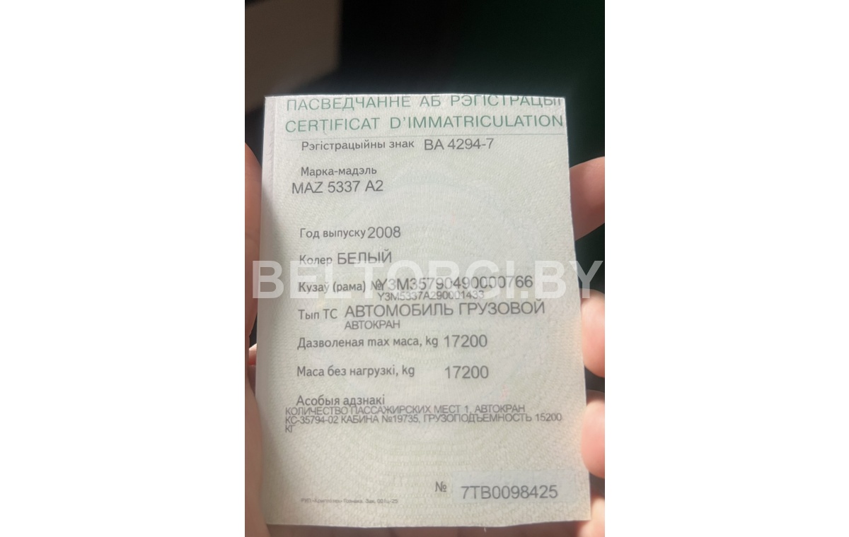 Назначение платежа - задаток по лоту № , наименование лота - "АТОМОБИЛЬ ГРУЗОВОЙ АВТОКРАН МАЗ 5337 А2 КС-3579-4-02- цвет белый, год выпуска 2008, Тип ТС -грузовой автокран, Кузов (рама) Y3M35790490000766".