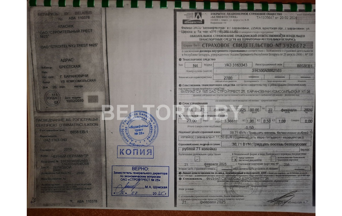 Зарегистрировано в торговом реестре Республики Беларусь: