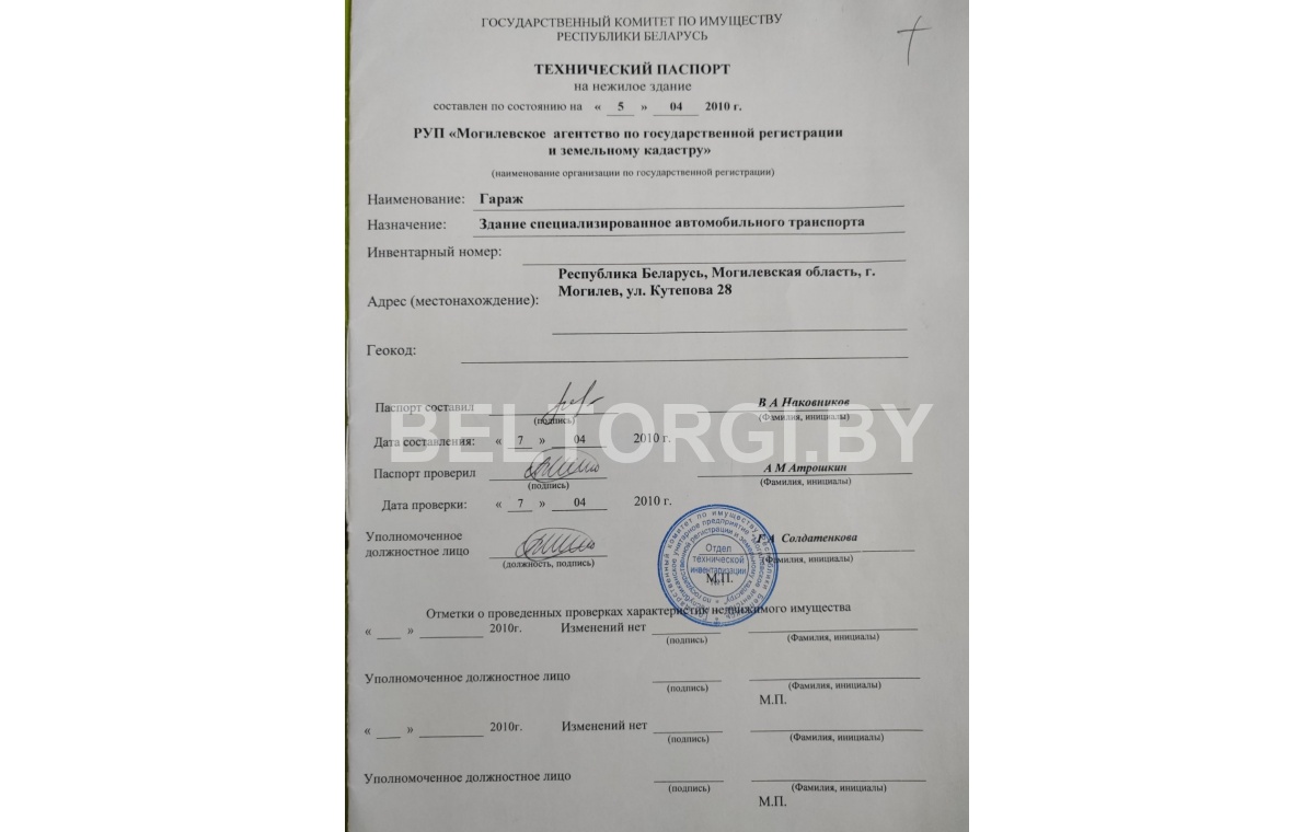 Назначение платежа - задаток по лоту № , наименование лота - "Гараж общ.пл. 47,7м2 по адресу г.Могилев, ул.Кутепова, 28".