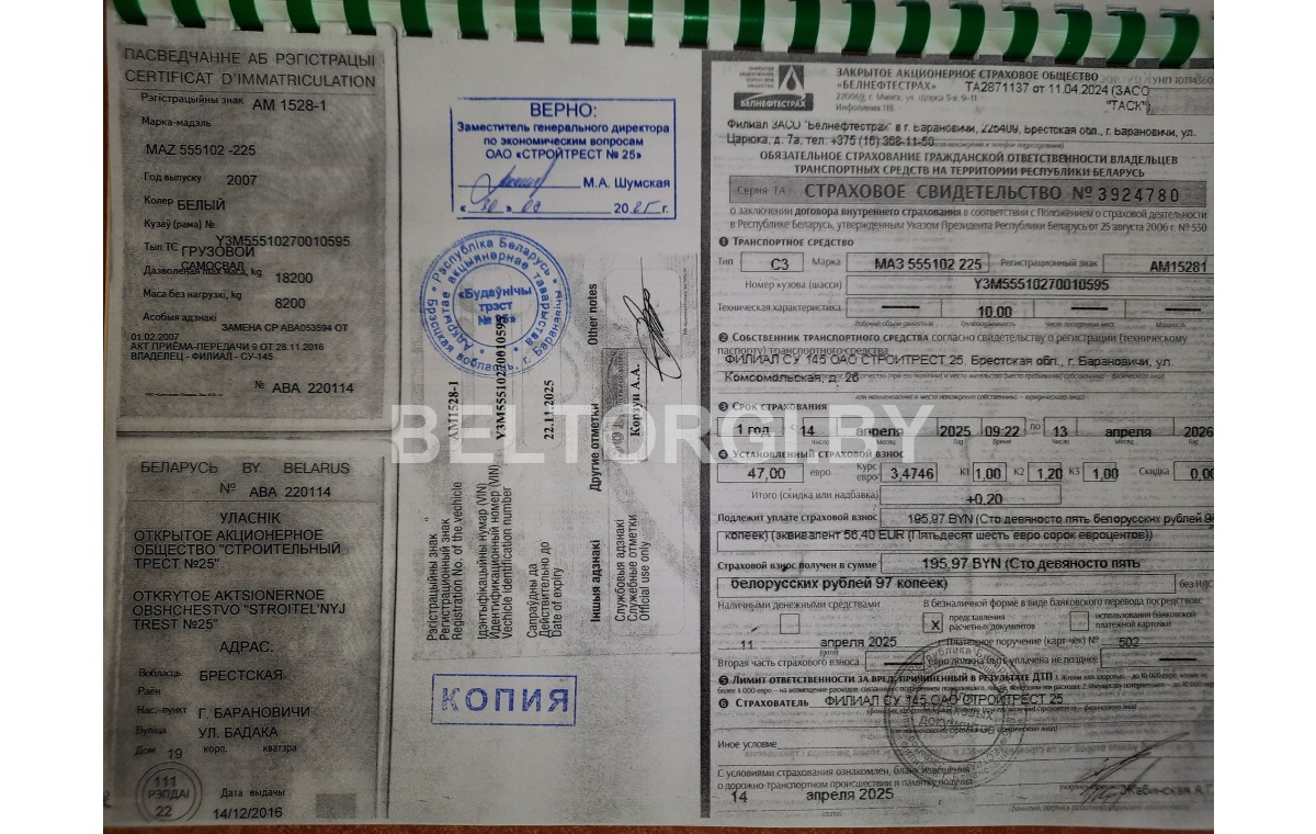 Зарегистрировано в торговом реестре Республики Беларусь: