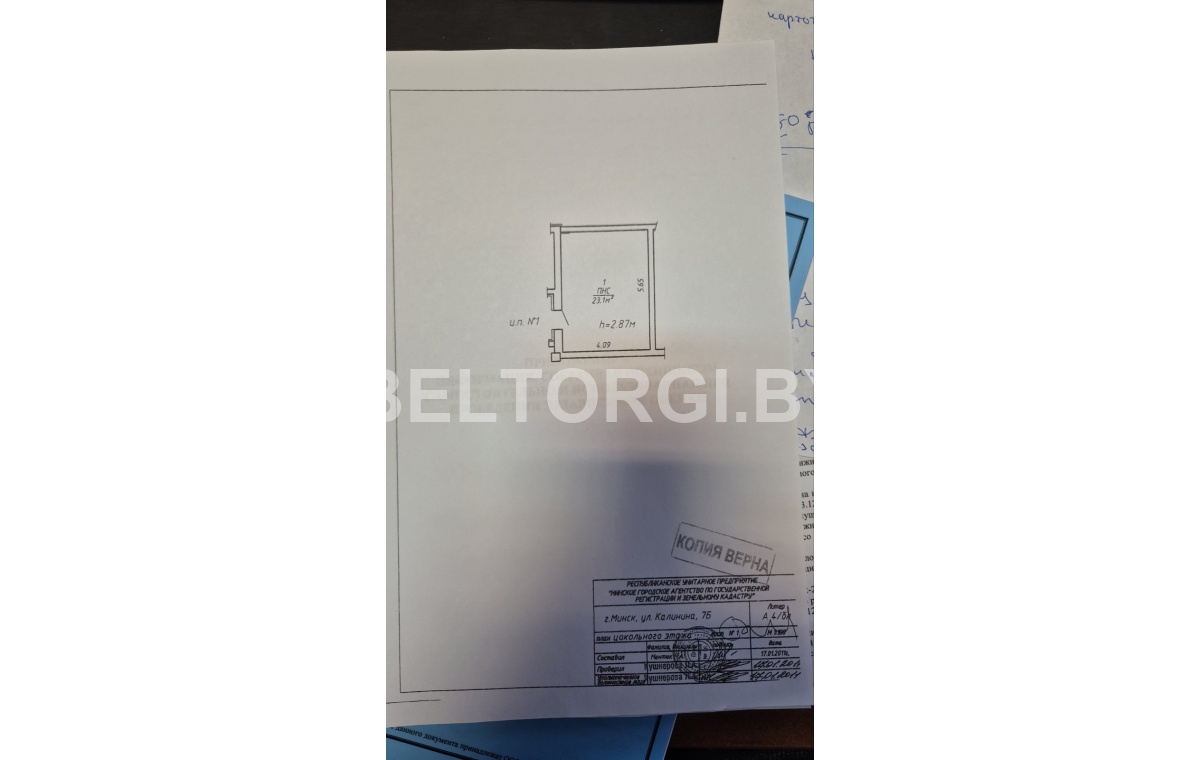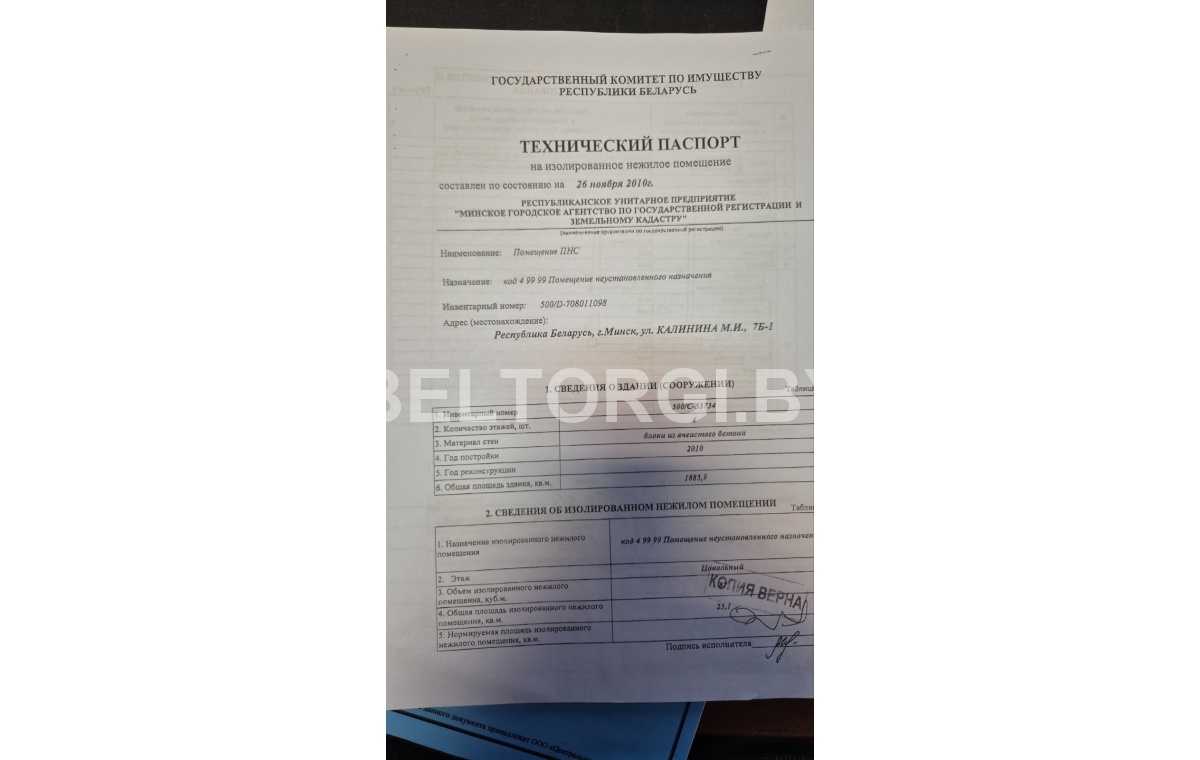 Назначение платежа - задаток по лоту № , наименование лота - "Капитальное строение (помещение ПНС) общ.пл. 23.1 кв.м. по адресу г. Минск, ул. Калинина, д.7Б, 1".