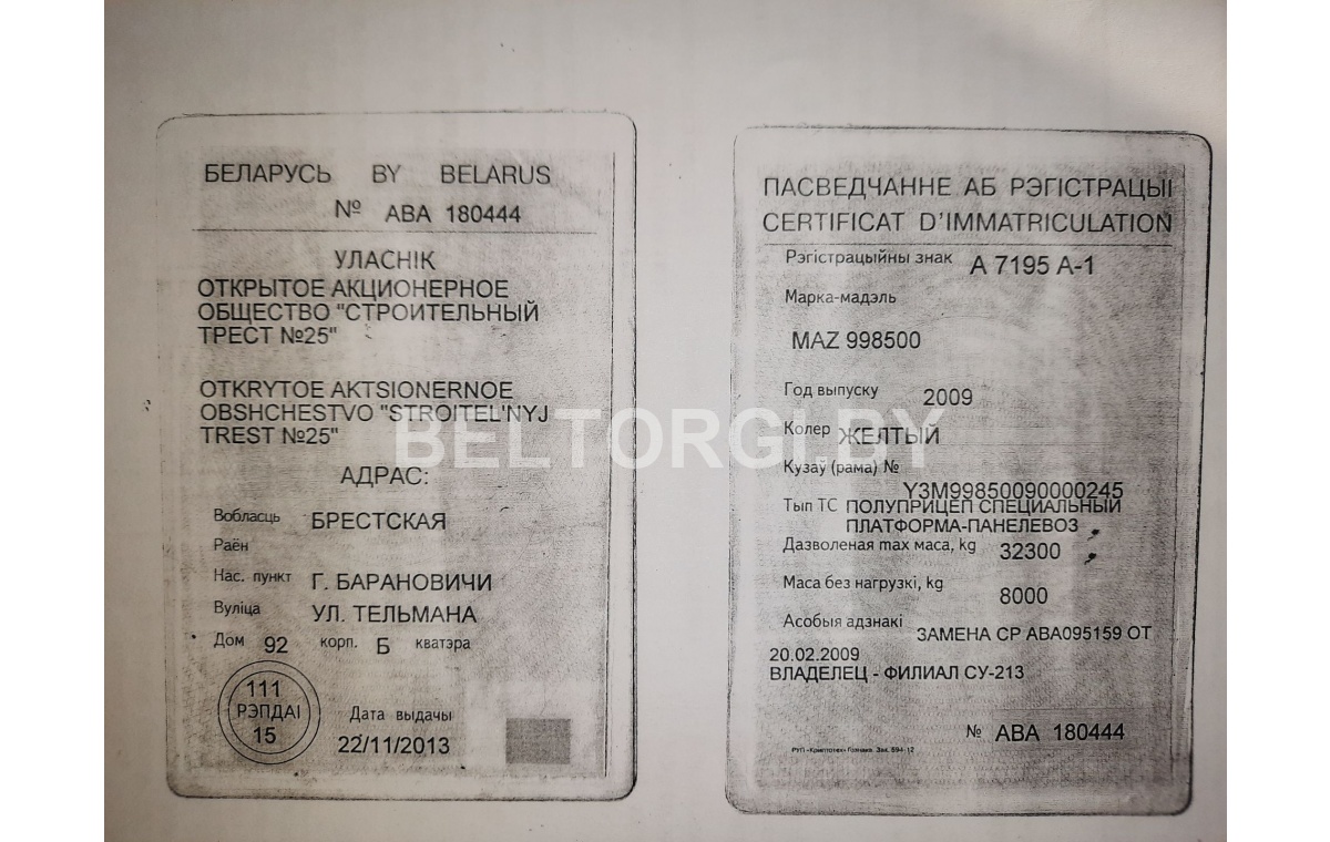 Зарегистрировано в торговом реестре Республики Беларусь: