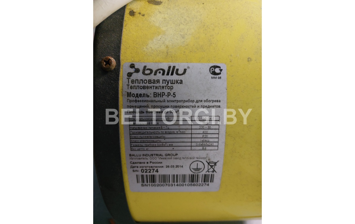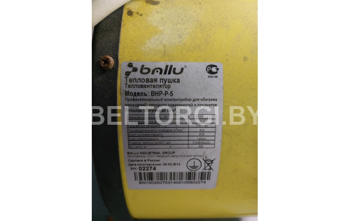Назначение платежа - задаток по лоту № , наименование лота - "Тепловая пушка электрическая Ballu BHP-P5 3380, Россия, 2014г.в.".